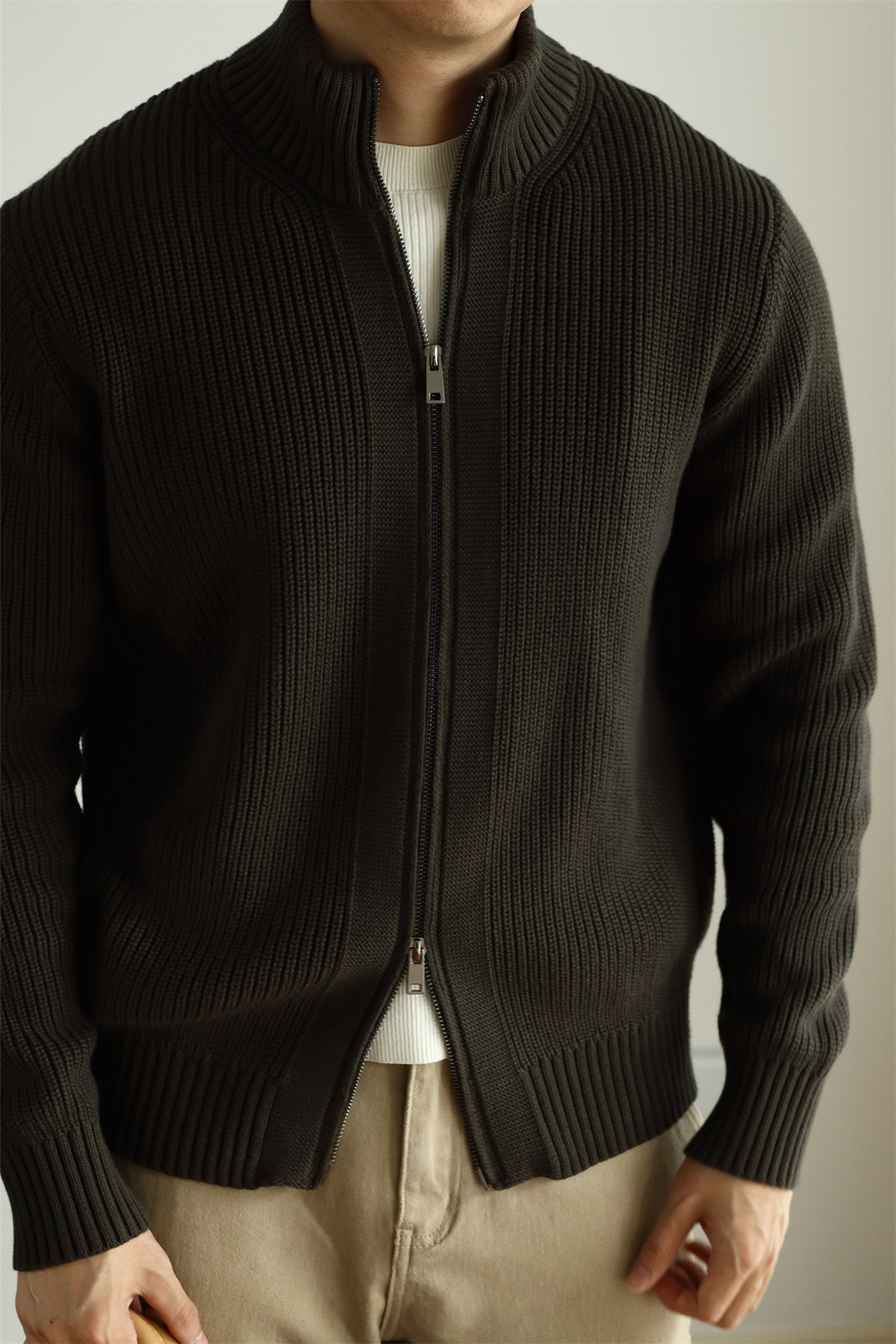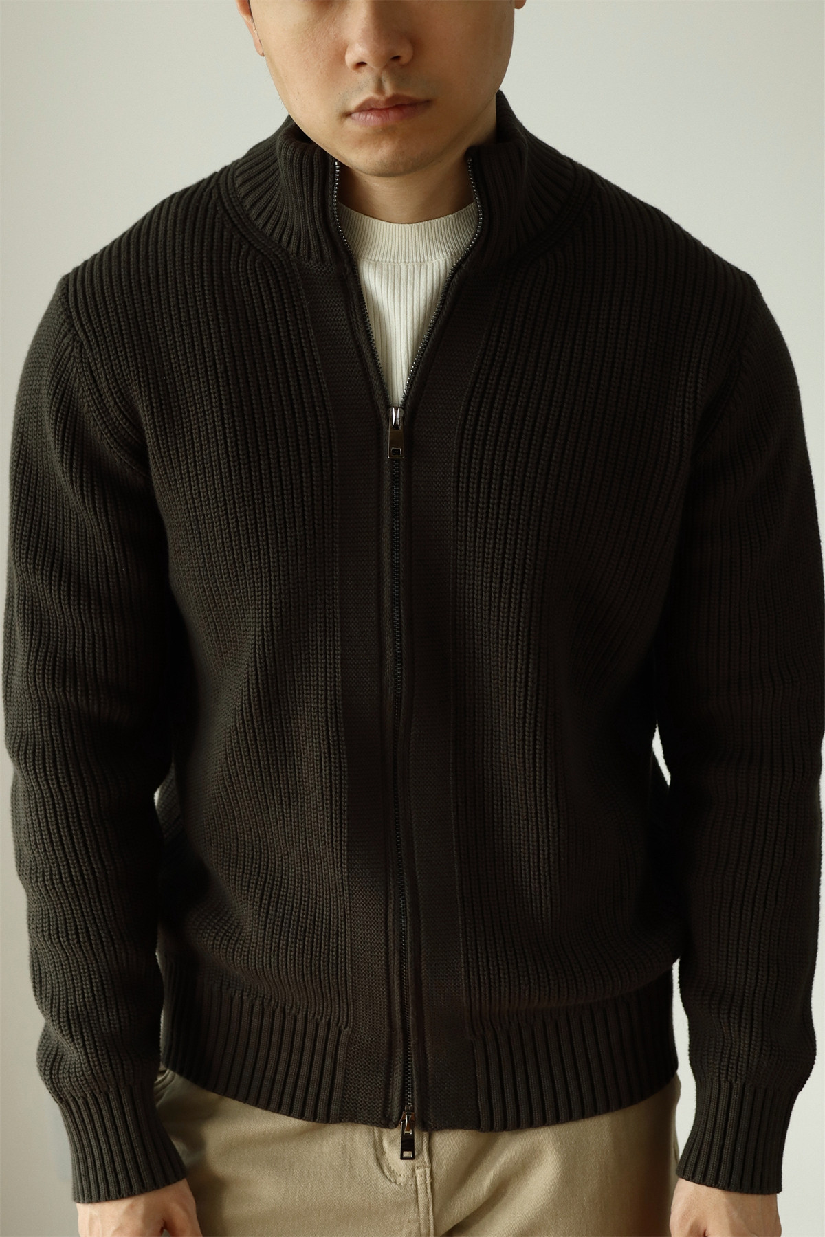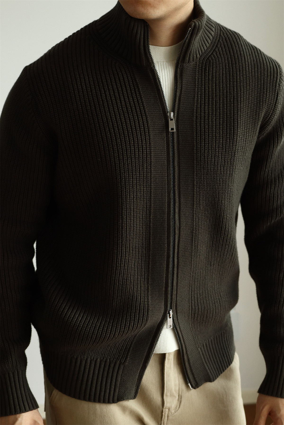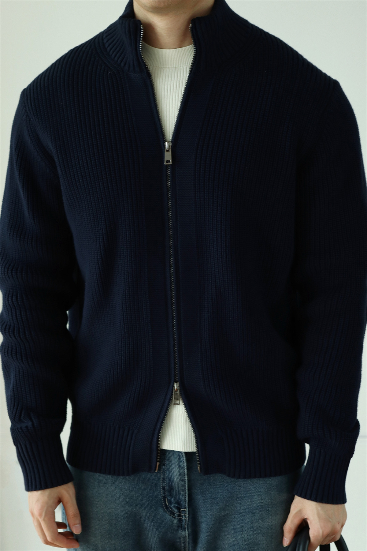 Features: Thickened, no-iron treatment, anti-pilling, heavyweight double-zip design, semi-high neck, loose fit